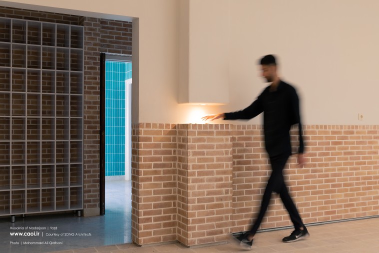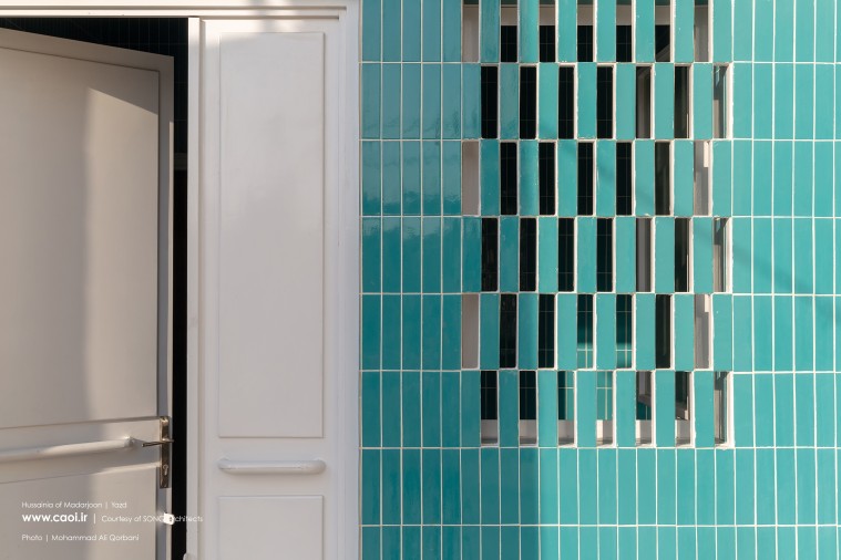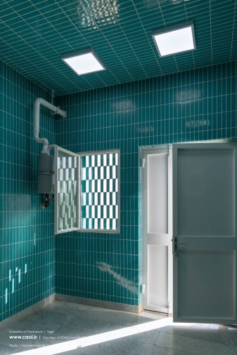 The façade combines traditional brickwork with turquoise tile, reflecting the historic identity of Yazd. In the women’s lavabo, a perforated brick screen provides both daylight and privacy. The entrance is emphasized through turquoise tile cladding on its interior and exterior walls, along with a perforated tile screen that creates visual continuity between inside and outside. Interior finishes consist of brick and plaster, evoking the simplicity and modesty of Yazd’s traditional architecture.