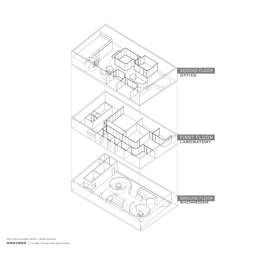 - Laboratory and Academy: Transparent, minimalist spaces allow trainees to observe industrial operations in real time. Five sequential workstations are arranged along a curved strip and connected via sliding doors, creating continuity and enhancing experiential learning. Architecture mediates between learning and production, positioning users as active participants rather than passive observers.
