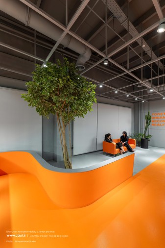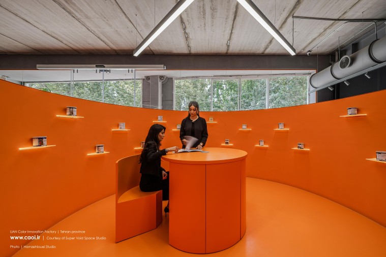 At the core of the project is color—not merely as surface treatment, but as an architectural subject with qualities such as fluidity, permeability, and penetration. These qualities guide both the programmatic organization and spatial experience, creating an environment that engages users physically, perceptually, and emotionally. The brand’s signature orange is embedded throughout the space, reinforcing corporate identity while energizing and animating the architectural language.