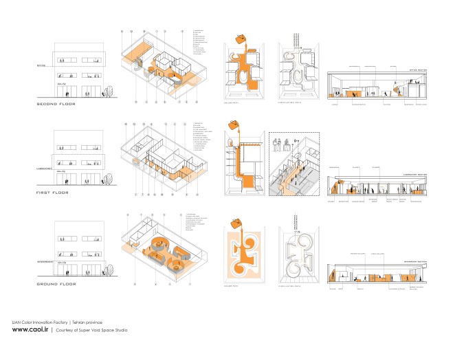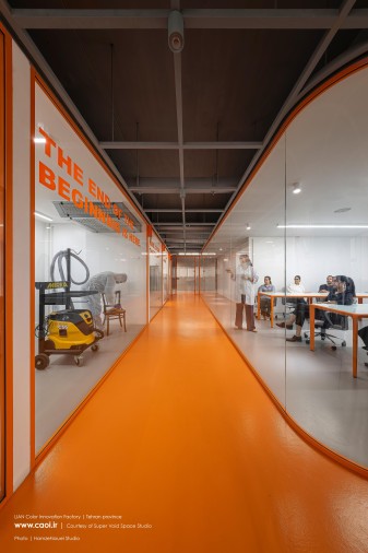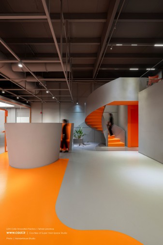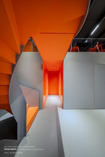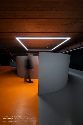 ویژگی مضاعف این پروژه در آن است که عرصههای متنوعی را در خود میگنجاند: از گالری های شوروم و فضاهای لابراتوار و آموزشی، تا اداری و مدیریتی. این همزیستی عملکردها، معماری را وادار میکند تا بهجای بازنمایی تکبعدی صنعت، به میانجیگری میان حوزههای تولید، آموزش، نمایش و مدیریت بپردازد. اما نقطهی کانونی، همان چیزی است که خود صنعت پروژه بدان گره خورده است: رنگ.